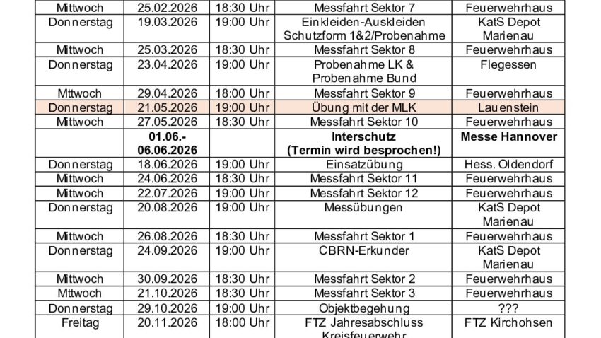 Dienstplan Messgruppe 2026