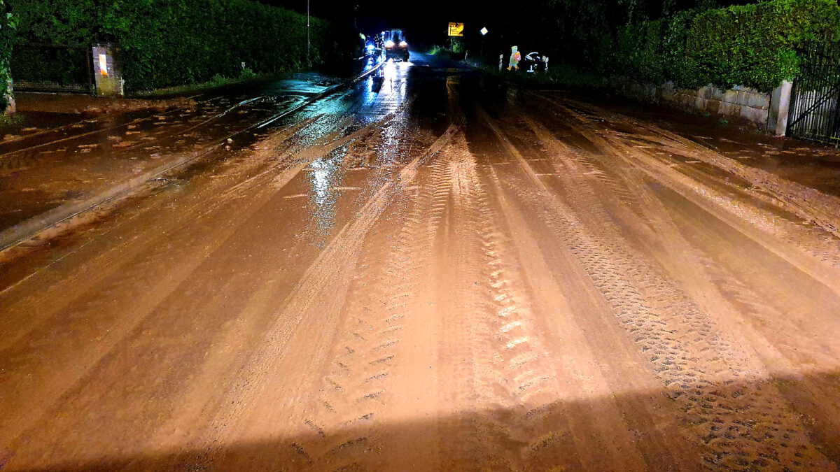 Nach einem kräftigen Gewitterschauer der sich Abend des 04.06.2021 über Hemmendorf ergoss und Unmengen an Schlamm von den Feldern auf die Straßen spülte, waren der komplette Stützpunkt Salzhemmendorf stundenlang im Einsatz, um die Straßen von den Schlammmassen zu befreien. Gegen 21:10 Uhr wurde die Ortsfeuerwehr Hemmendorf alarmiert, kurz darauf piepten auch die Meldeempfänger der Kameraden aus Salzhemmendorf und Lauenstein. Mit Schaufeln, Besen, Strahlrohren und einem Radlader reinigten die Feuerwehrleute die Straßen. Da neben den Straßen „Marktplatz, Beekstraße“und „Vor dem Tore“, auch die Bundesstraße (Alte Heerstraße) betroffen war, musste diese von der Polizei für einige Zeit voll gesperrt und der Verkehr umgeleitet werden. Auch aus Richtung Salzhemmendorf und Lauenstein gab es keine, Möglichkeit durch Hemmendorf zu kommen, hier sperrten Feuerwehrleute die Straße komplett ab. Gegen 01:30 Uhr konnte schließlich der Einsatz beendet werden.